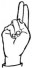 На ћирилици написано ВУКОСЛАВ ШАБАНОВИЋ састоји се из 17 слова [?]. Исписано ћириличном једноручном азбуком за глувонеме: